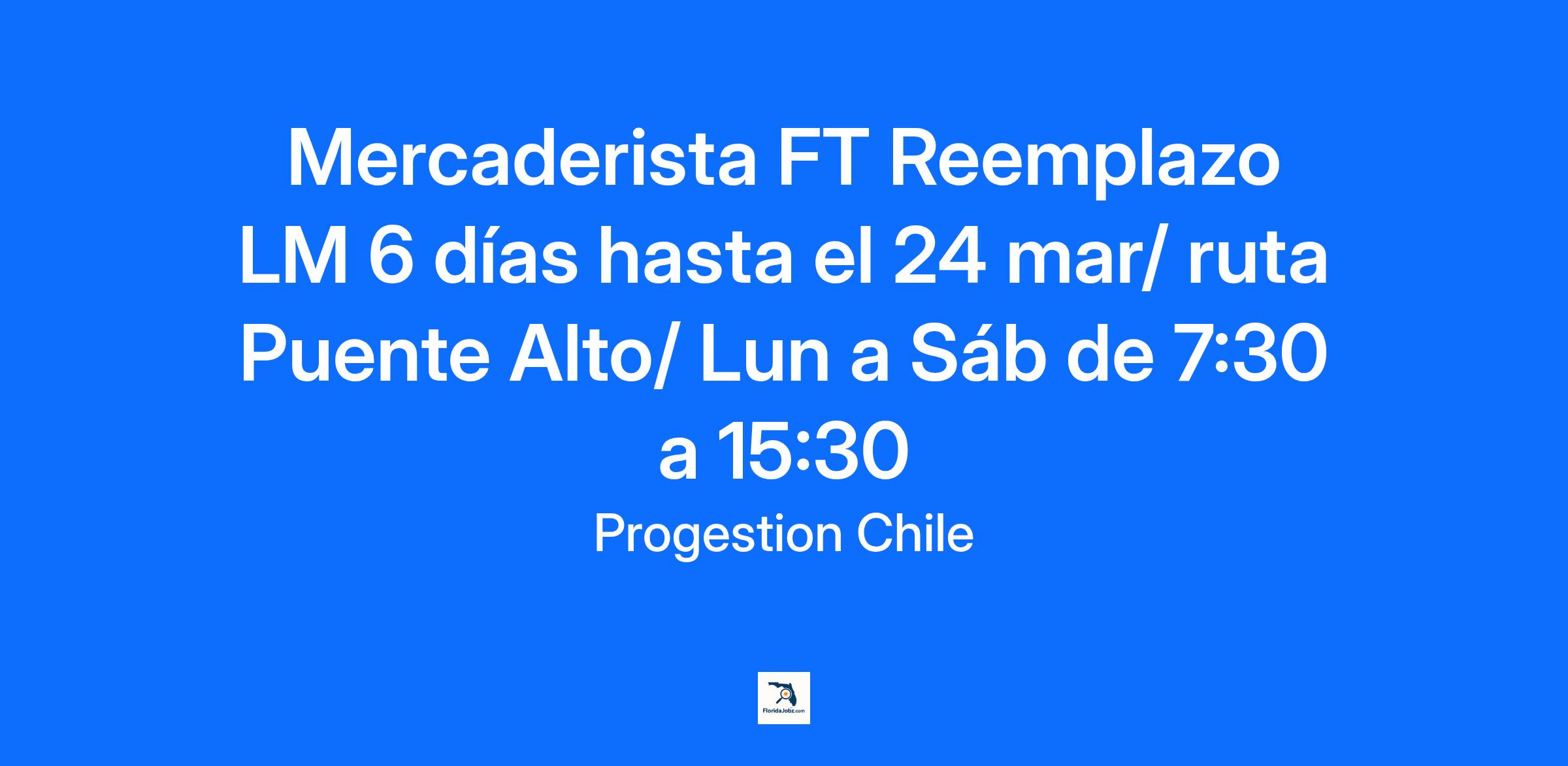 Importante Empresa del rubro alimenticio de aspecto nutritivo humana y animal, se encuentra en búsqueda de un reponedor full time para cubrir licencia médica realizando rutas en la comuna de Puente Alto.