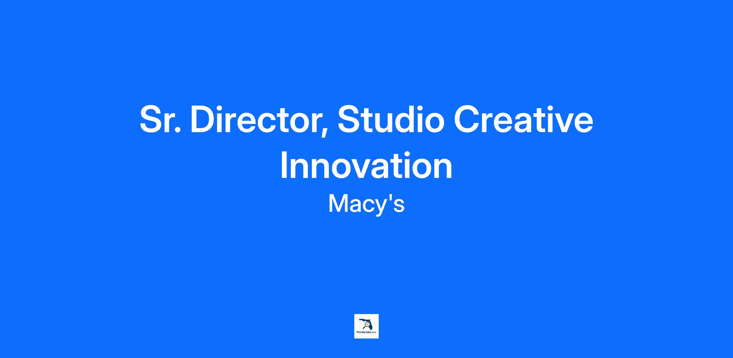 The Senior Director, Studio Creative Innovation will lead the transformation of Macy's in-house photo and video studio into a cutting-edge, future-ready storytelling hub. This role reimagines a legacy content engine by integrating AI-enabled workflows, experiential storytelling, and high-impact brand visuals meet operational excellence.